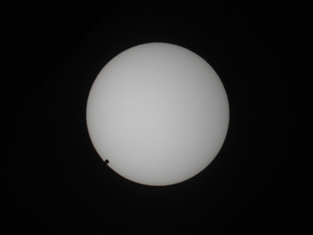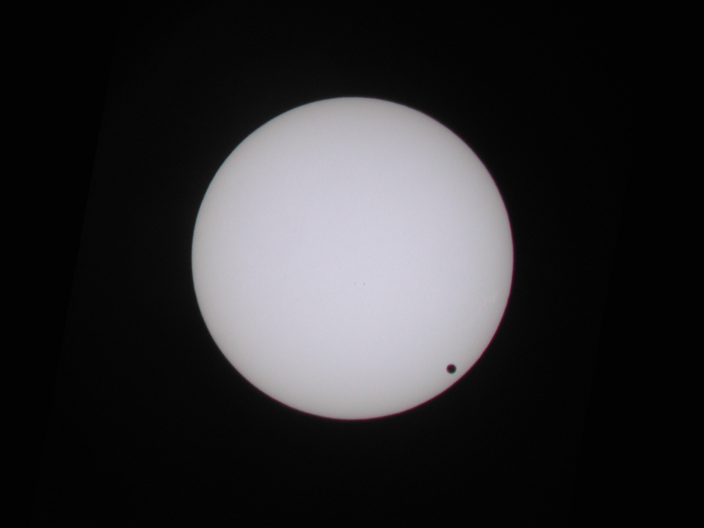 These white light images were taken through an Orion StarMax 102mm Mak-Cass. Baader AstroSolar visual filter film was used for the solar filter. The images were taken afocally using a Nikon 885 in program mode. A Scopetronix Digi-T adapter was used to help center and support the camera, but the camera was hand held. This allowed for quick switching between looking and taking images. The pictures are nice to have, but it was more fun to watch! The only processing was to invert the images and then rotate the images to a consistent viewing angle. The image scale was then reduced to 1024x768. Click on an image to display at 1024x768. Enjoy!